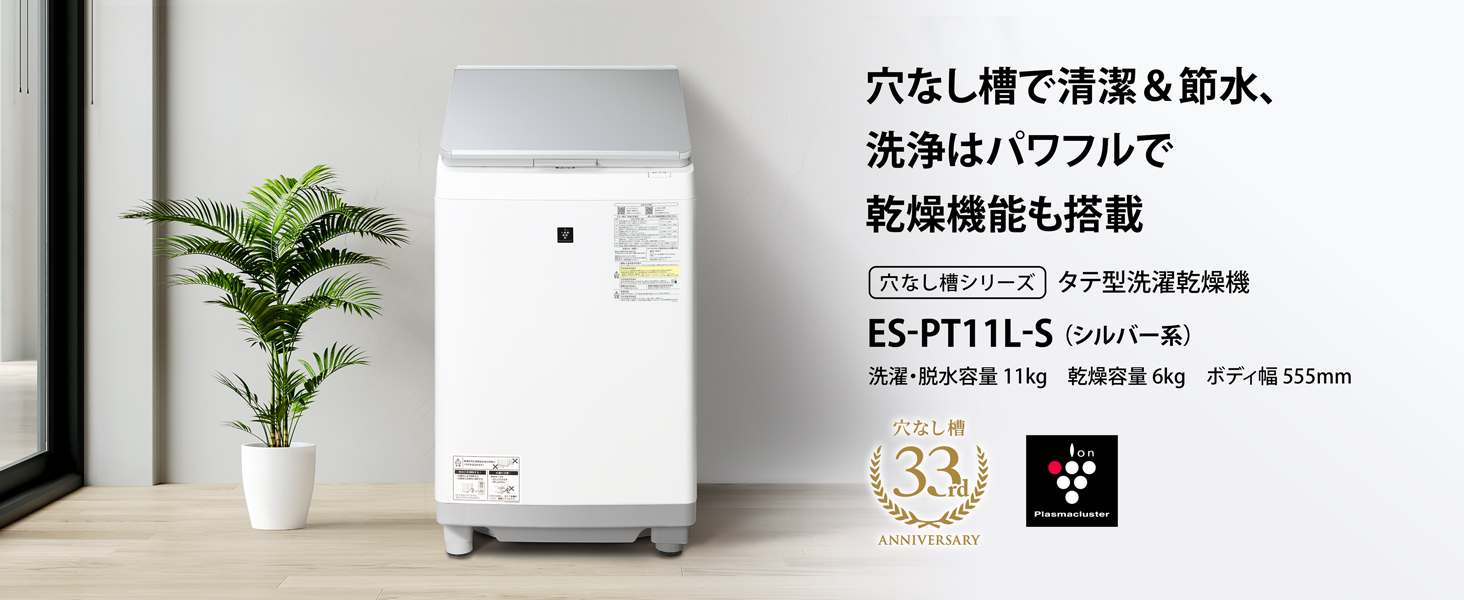 ※ シャープ実験による。衣類の量・素材、汚れや洗剤の種類によって洗浄効果が異なります。ES-PT11Lと同仕様の洗濯機にて実施、洗濯~乾燥4.5kg、温つけおき洗いコース運転時。