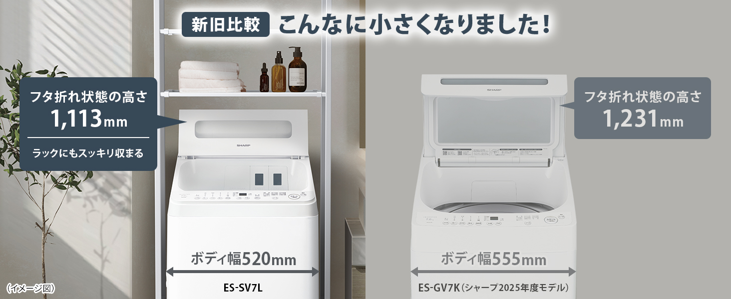 ※1 シャープ実験による。衣類の量・素材によって仕上がりが異なります。シワ抑えコース:ES-GE7F・1kg。標準コース:ES-GE7F・1kg。(2021年度、当該製品でも効果は同じです。)