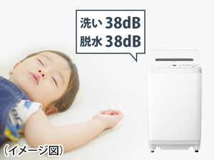 高速回転時でも運転音を抑えるインバーターを搭載。夜間や早朝でも気がねなくお洗濯できます。