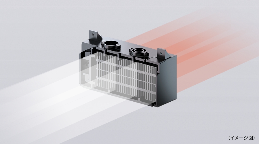 効率よく風を送り出すファン周辺構造と、内部部品から発生する音を抑える防音パネルにより、最大運転時でも使いやすい運転音を実現しました。