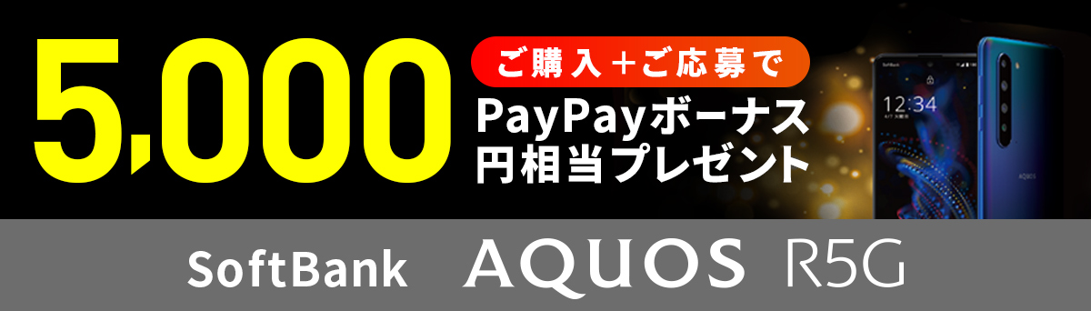 期間中にSoftBank AQUOS R5Gをご購入し、キャンペーンにご応募いただくと、PayPayボーナス5,000円相当プレゼント!