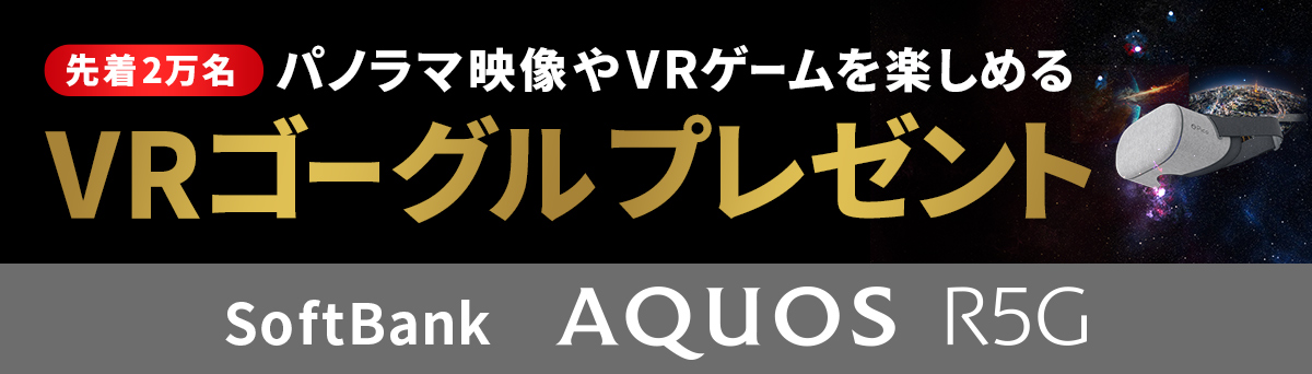 期間中にSoftBank AQUOS R5Gをご購入いただくと先着2万名様にVRゴーグルプレゼント!