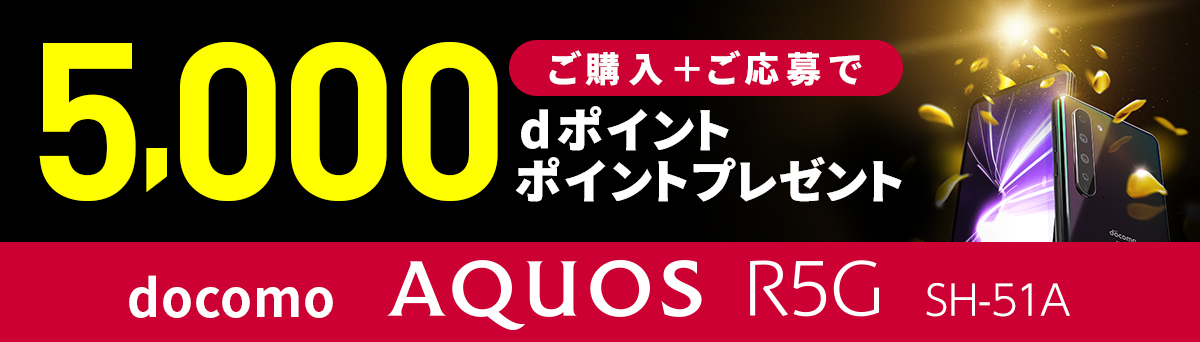 期間中にdocomo AQUOS R5G SH-51Aをご購入し、キャンペーンにご応募いただくと、dポイント5,000ポイントプレゼント!