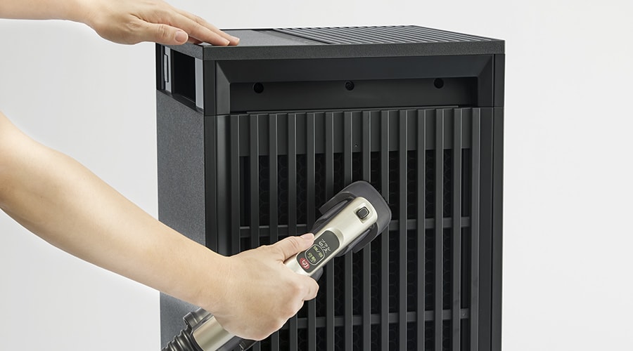 プレフィルターについた大きなホコリは、サイドパネルをつけたまま掃除機で吸い取るだけ。簡単にお掃除ができます。