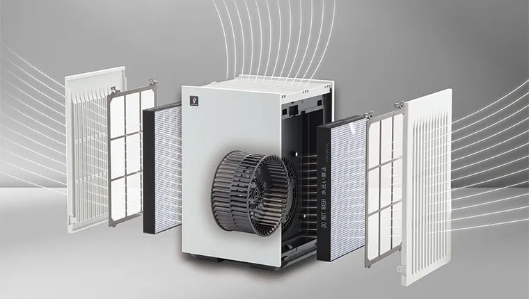 - ※1当技術マークの数字は、商品を壁際に置いて、「強」運転時にプラズマクラスター適用床面積の部屋中央(床上1.2m)で測定した1cm³当たりのイオン個数の目安です。