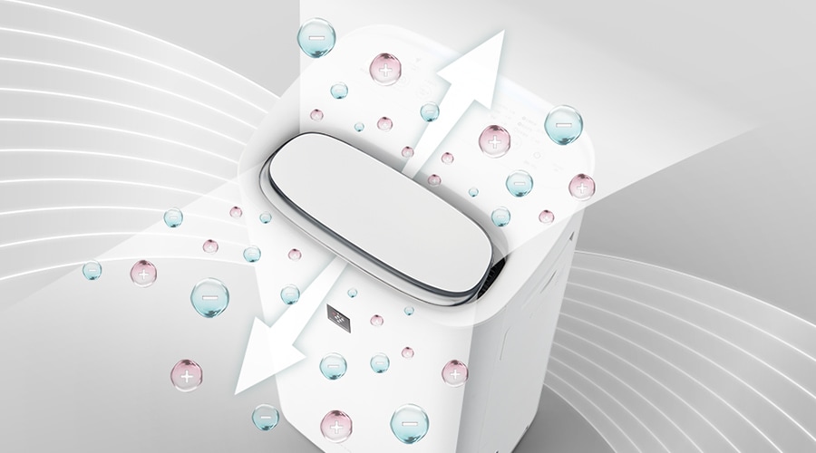 プラズマクラスターは「+」と「-」両方の静電気を除去できるので、 花粉や微小な粒子が壁などへ付着するのを抑制します。
