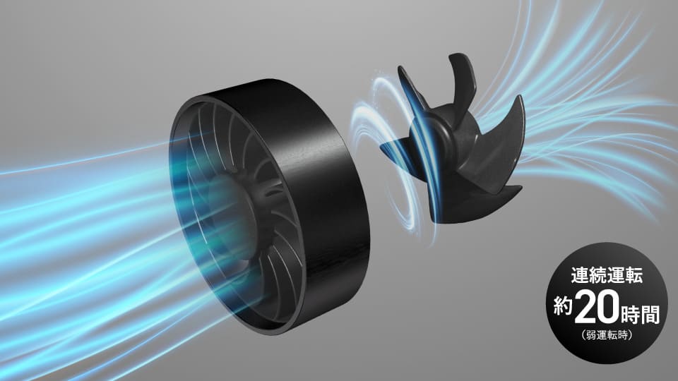 やさしい運転音、なのに大風量。サーキュレーター着想の風を、この手に。