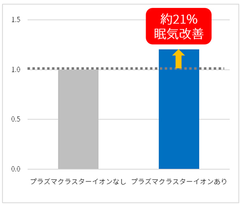 図5. 運転中の眠気が改善した割合(プラズマクラスターイオンなしを1としたときの相対値)