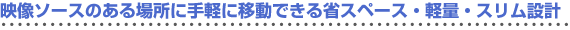 | たとえばパソコンのある部屋からモニターだけ持ち出して、お好きな部屋でゲームを楽しむ。そんなときも、軽量・スリム設計で、キャリーハンドル付ですから移動も軽快。しかも省スペース設計ですから設置場所をとりません。 | |  |