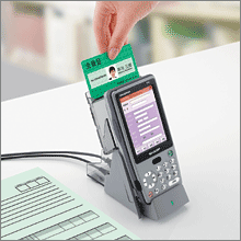 ISO/IEC14443 Type A/B、FeliCa※2のインタフェースに対応し、各種非接触ICカードとの連携が可能。IC運転免許証の読取り、IC社員証・学生証・会員証、医療カード等の読取り書込みができます。
