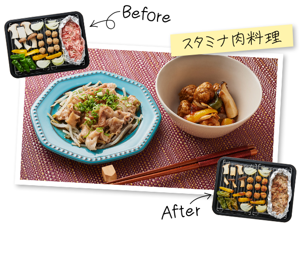 - 8.まかせて調理(炒める)→「+下段で同時調理」「+たっぷり温野菜」を選択、あたためスタート。