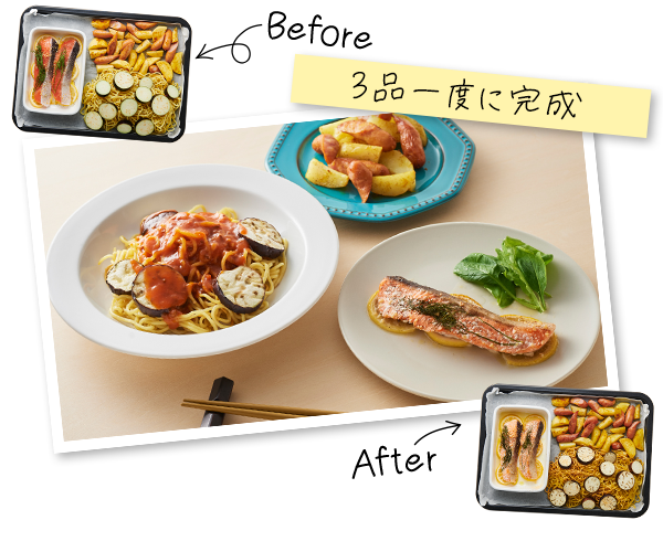 同時調理でできる献立です。火を使わずにほったらかしで作れるので、忙しい方やワーママさんにもお勧めしたいところです。