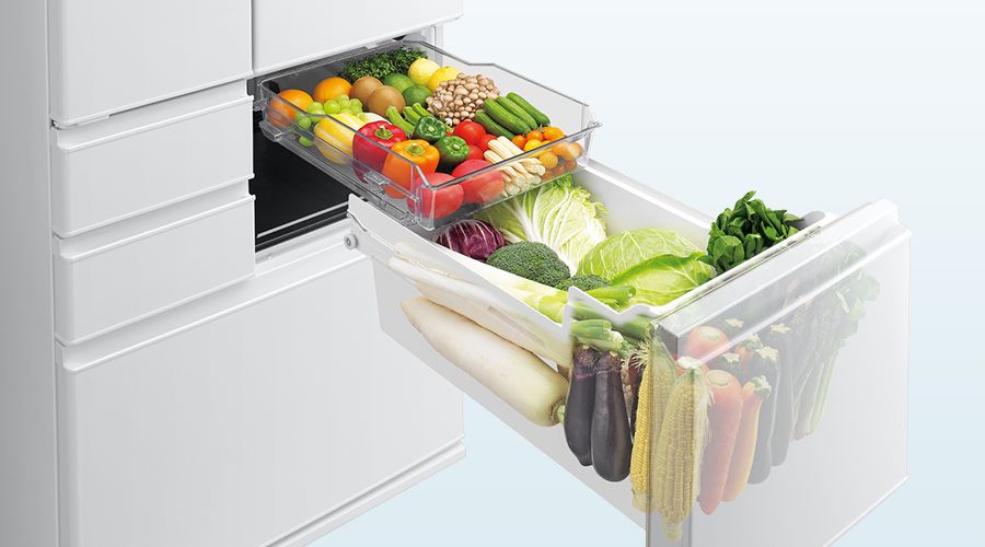雪国で野菜を雪の下に置いて長期間保存するように、冷凍室に囲まれた独自スタイルを活かして野菜室を冷却。低温・高湿環境で鮮度を守りながら、甘味成分がアップします。