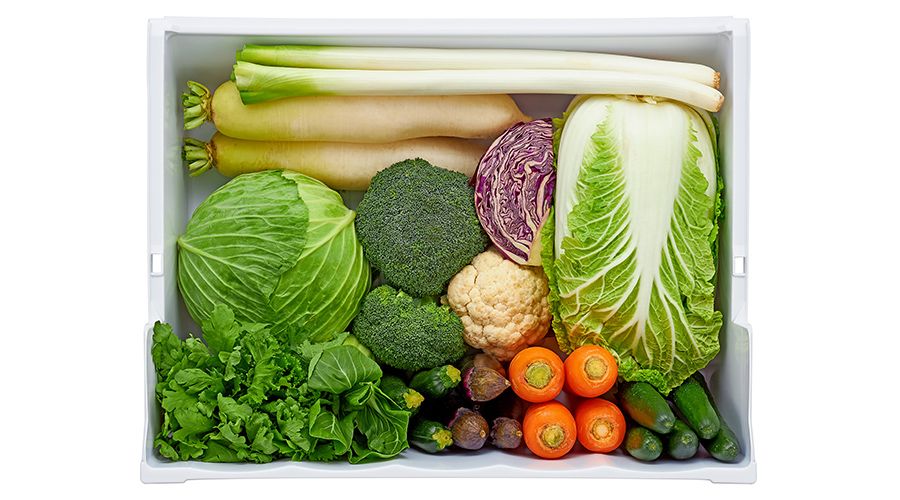 右側エリアには白菜のような大物野菜を、左側エリアにはキャベツやレタスを入れられます。横幅は長物野菜も余裕で入ります。手前には、にんじん、キュウリなど背の高い野菜が縦に収納できます。