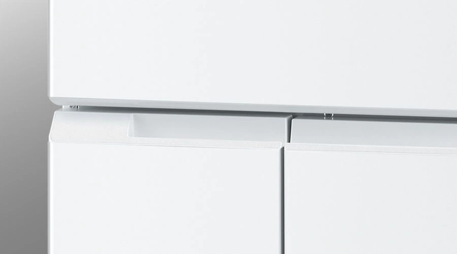 奥行き薄型のスリム設計。上質なメタル素材のドアに表面質感を加えたハンドルデザインを組み合わせたスタイリッシュなデザインが、キッチン空間にすっきりとなじみます。