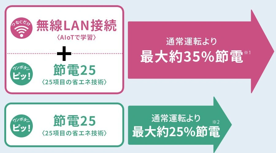 生活リズムに合わせて省エネ運転!「つないでもっと節電」で通常運転より最大約35%※1節電