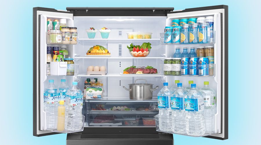 センターピラーとは、左右のドアの隙間を埋める柱。センターピラーがあるとドアポケットの収納スペースが狭くなりますが、シャープのフレンチドアは全てセンターピラーがない独自構造なので、ドアポケットも広々使えます。ドアの開け閉めも持つ場所を選ばないのでラクラク。