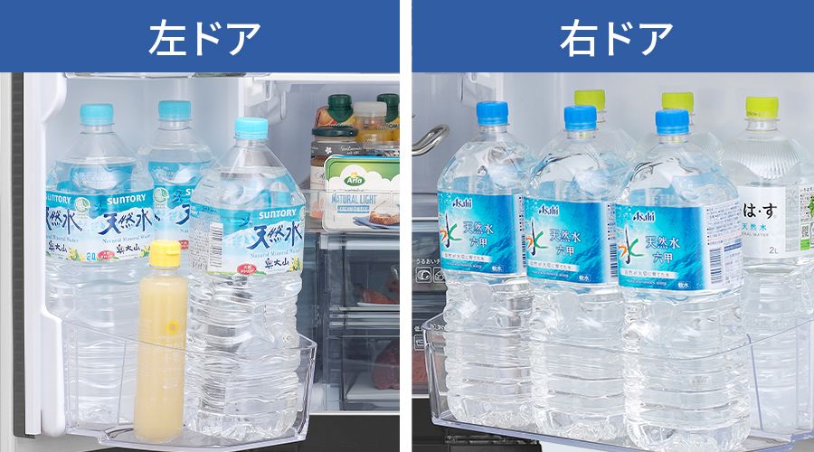 ドアポケットが広く使える。2Lペットボトルをたっぷり計9本*収納。