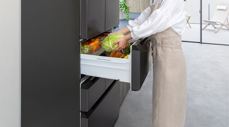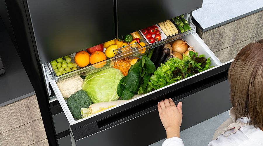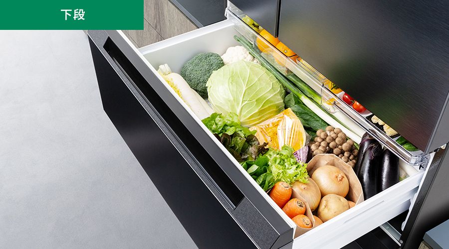 食品の出し入れがしやすい、真ん中レイアウトの野菜室