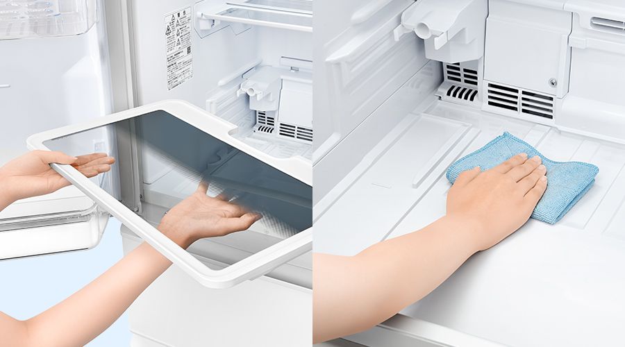 チルド上の棚まで全て取りはずしができるので、今まで掃除ができなかったところまで簡単にお掃除可能に。