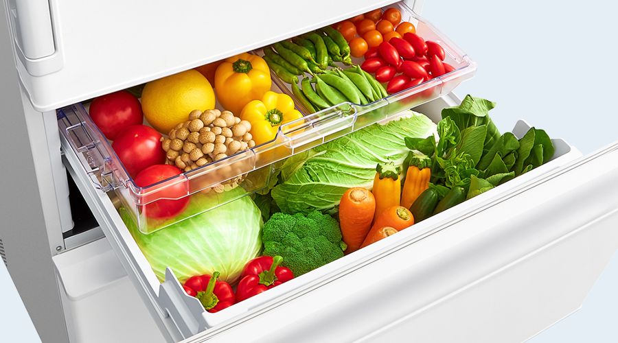 食品の出し入れがしやすい、真ん中レイアウトの野菜室