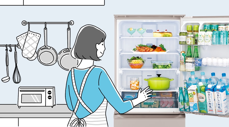 女性の平均身長に合わせたローウエスト設計で、重いペットボトルもラクに出し入れできます。