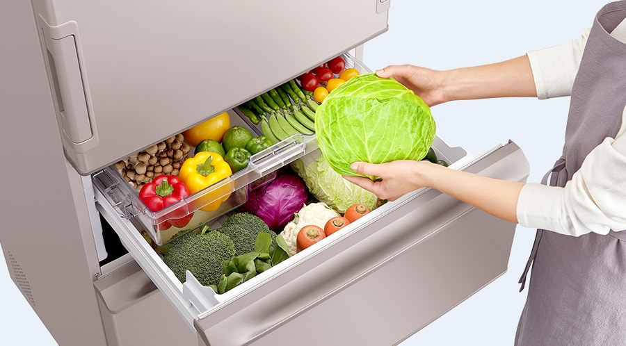 食品の出し入れがしやすい、真ん中レイアウトの野菜室