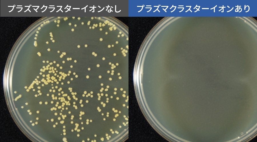 - ※2浮遊菌除菌効果(100Lのボックス内での実験結果。実使用空間での実証結果ではありません。)【試験依頼先】(一財)石川県予防医学協会【試験成績書】第H1600196K号【試験方法】100Lのボックス内に菌を塗布した寒天培地を配置し、プラズマクラスターイオン放出6日後の生菌数を測定(プラズマクラスターイオン濃度:50,000個/cm³)【対象場所】冷蔵室内【試験結果】6日間で除去率99%以上