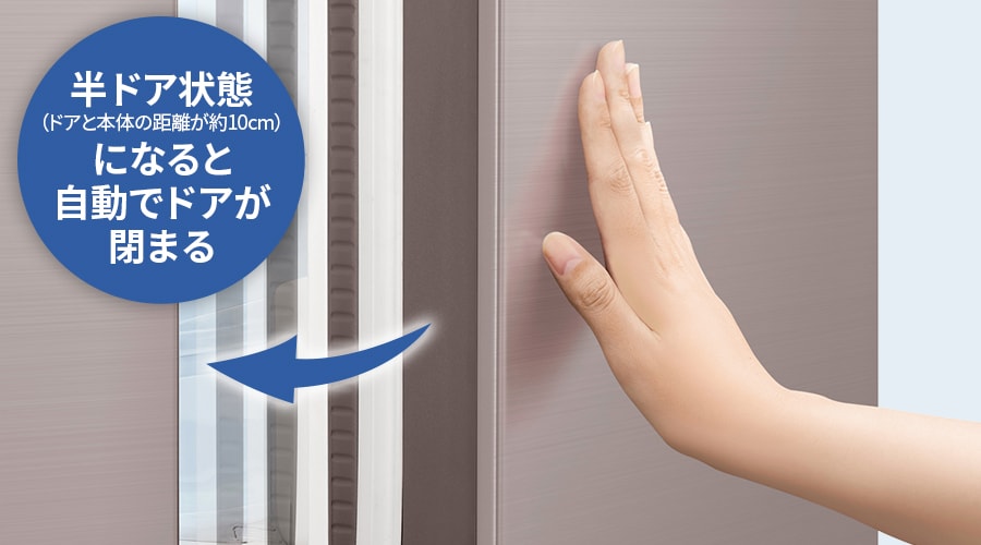 半ドア状態(ドアと本体の距離が約10cm)になると、自動でドアが閉まります。