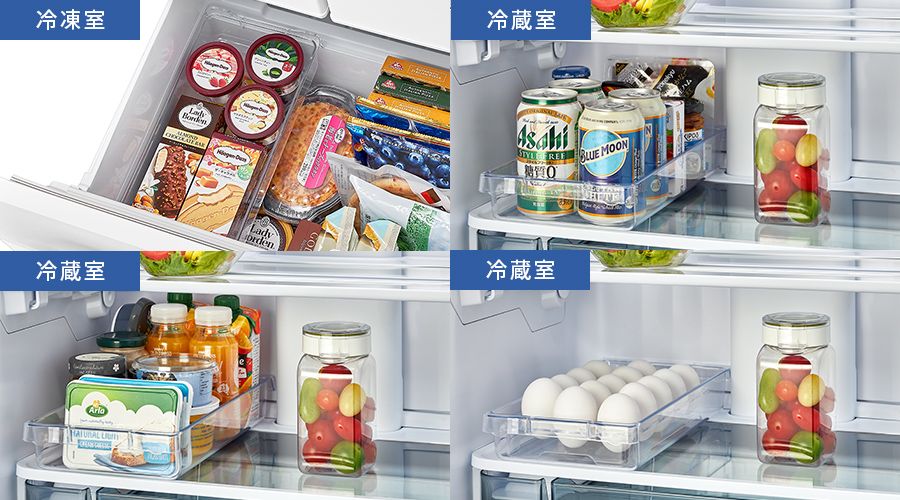 冷蔵室や冷凍室で、よく使う食材をまとめてすっきり収納できます。