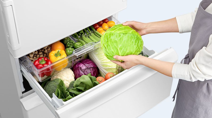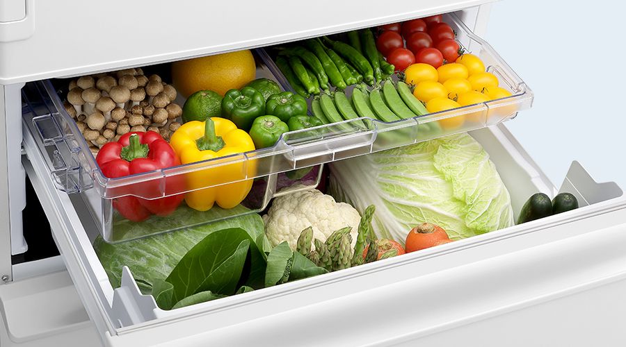 野菜の出し入れがしやすい、真ん中レイアウトの野菜室