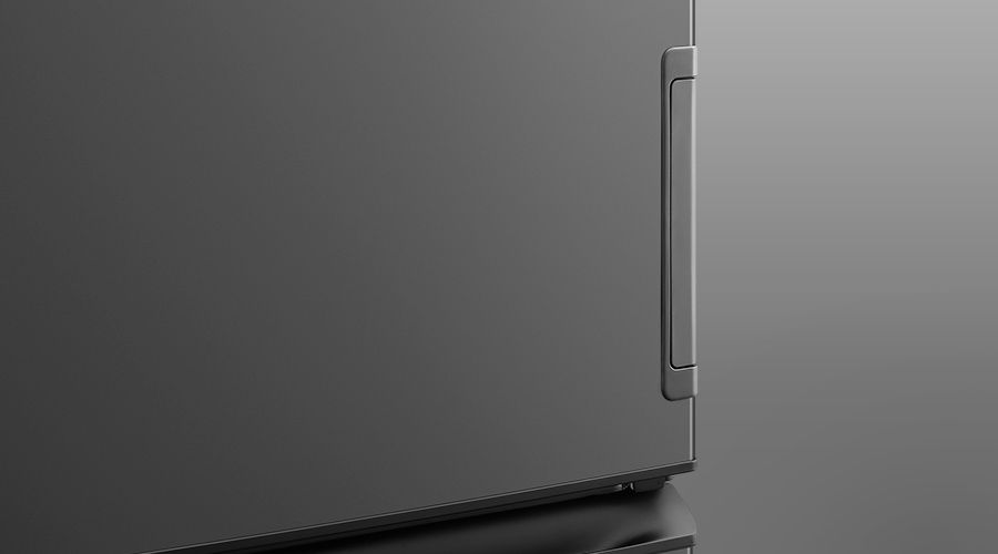ドア形状や庫内の冷蔵棚などに、触り心地がやさしく使いやすい「ラウンディッシュデザイン」を採用。外観デザインも見た目にやさしいフォルムで空間にすんなりと溶け込みます。