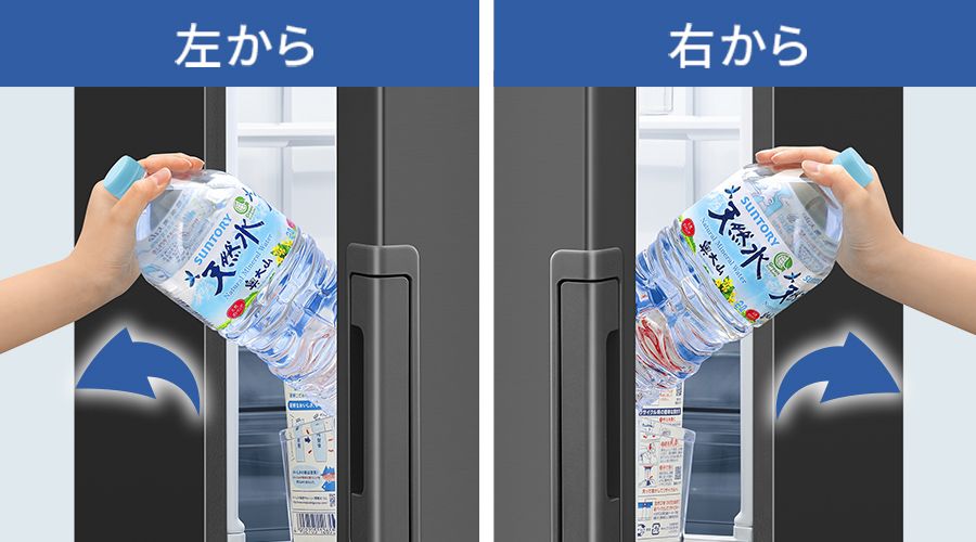 ドアを全開しなくても、左右のポケットの横からサッと取り出せます。
