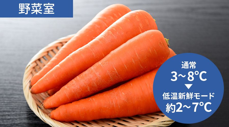 【野菜室】通常約3~8℃が約2~7℃に低温制御