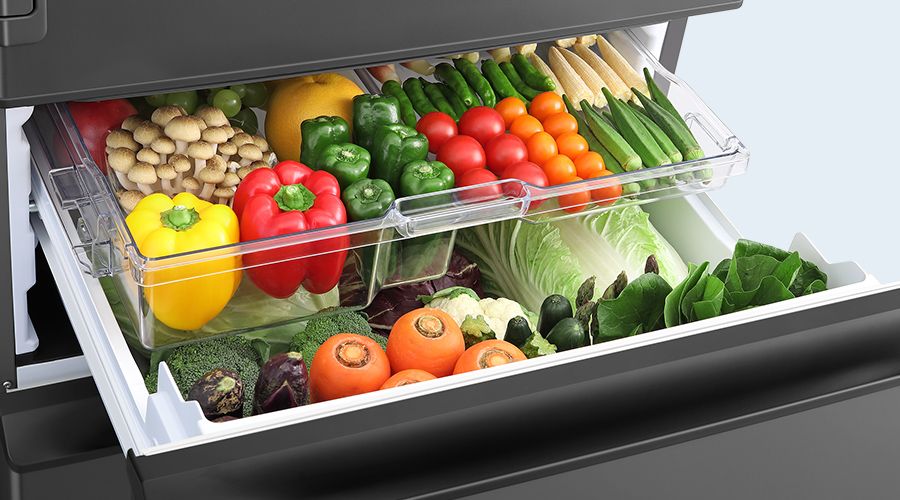 野菜の出し入れがしやすい、真ん中レイアウトの野菜室