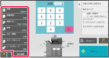 原稿の読み込みサイズや濃度、画質などを設定します。