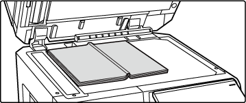 本などの見開き原稿をコピーするときに、見開きの2ページ単位で原稿を読み取ります。