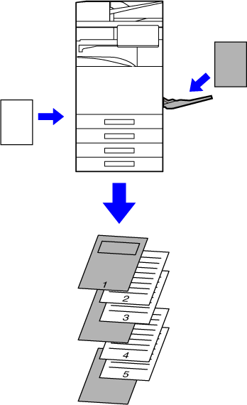 表紙と裏表紙だけ厚紙にプリントしたいときや、指定したページに色紙など別の用紙を挿入したいときに使用します。
