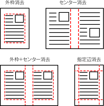 枠消去の種類(外枠消去、センター消去、外枠+センター消去、指定辺消去)