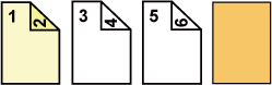 ![]() 原稿の1枚目を表表紙に片面コピーして、原稿の5、6枚目は裏表紙に両面コピーします。 |