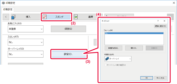 - オーバーレイファイルを使ってプリントするアプリケーションソフトからドライバー設定画面を開く