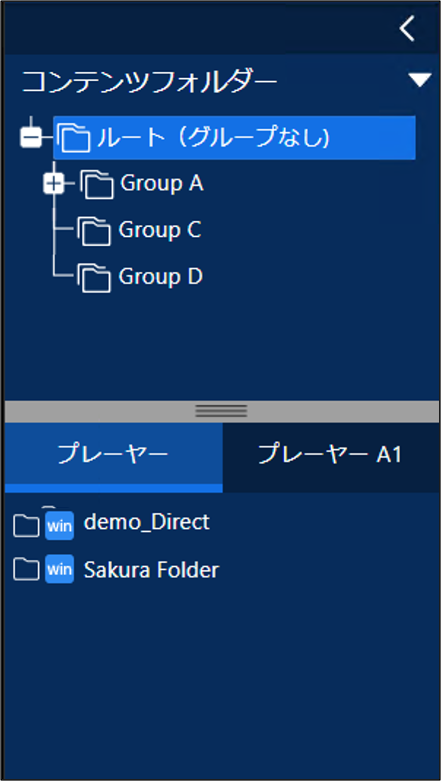 配信データ選択エリアのコンテンツフォルダーグループ名をクリックすると、そのコンテンツフォルダーグループに属するコンテンツフォルダーが下側に表示されます。