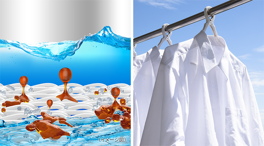 洗濯物に対して適量の洗剤を投入すると、それを少ない水でしっかり溶かし、高濃度の洗剤液を作ります。洗剤の濃度が高い状態からお洗濯がスタートすることで、繊維の奧の汚れまでしっかりと分解します。