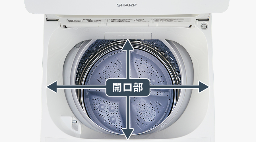 大きく滑らかな開口部なので、毛布など大きめの洗濯物や大量の衣類もスムーズに出し入れできます。