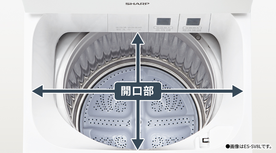 大きく滑らかな開口部なので、毛布など大きめの洗濯物や大量の衣類もスムーズに出し入れできます。