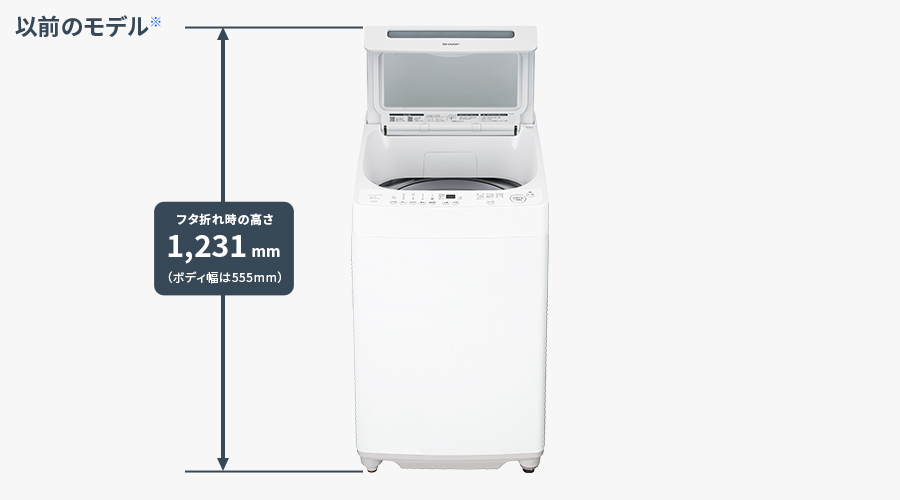 当社前年度モデルに比べ、フタ折れ時の高さが118mm低く、ボディ幅が35mmスリムになりました。