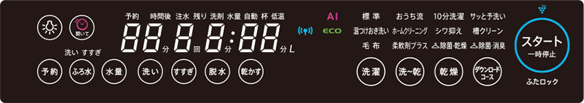 | 使いやすさ | 無線LAN対応、音声機能、ダイレクトタッチナビ、槽内LEDライト、WIDEマウス&LOWボディ、ほぐし運転、シワ抑えコース | |