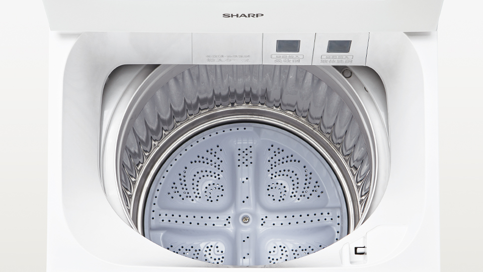 洗剤自動投入機能も搭載、省スペース設計の8kgタイプ 【穴なし槽シリーズ】全自動洗濯機 ES-SV8L オープン価格 -W(ホワイト系) 主な仕様 洗濯・脱水容量 8kg ボディ幅 520mm 仕様を見る 商品の色・柄は画面の見え方等により、実際とは異なる場合があります。 別売オプション品 一覧(サポートページに移動) 特長 洗浄力 穴なしサイクロン洗浄で、繊維の奥の汚れをすばやく分解。ガンコな汚れもすっきり。 詳しく見る 節水・清潔 シャープだけの穴なし槽で、黒カビの侵入を防いできれいな水でお洗濯。さらに節水。 詳しく見る 自動投入 液体洗剤・柔軟剤の自動投入機能付き。ウォーターポンプ方式だから、お手入れもラク。 詳しく見る やさしさ設計 毛布の出し入れもしやすい大きな開口部や、するっと取り出せるほぐし運転を搭載。 詳しく見る 特長をもっと詳しく見る お役立ちコンテンツ 穴なし槽洗濯機の「清潔力」はホンモノか?実際にユーザーさんが30年間使用した初号機「最古の穴なし槽洗濯機」を徹底検証しました。 詳しく見る 特長1 全製品一覧 仕様比較