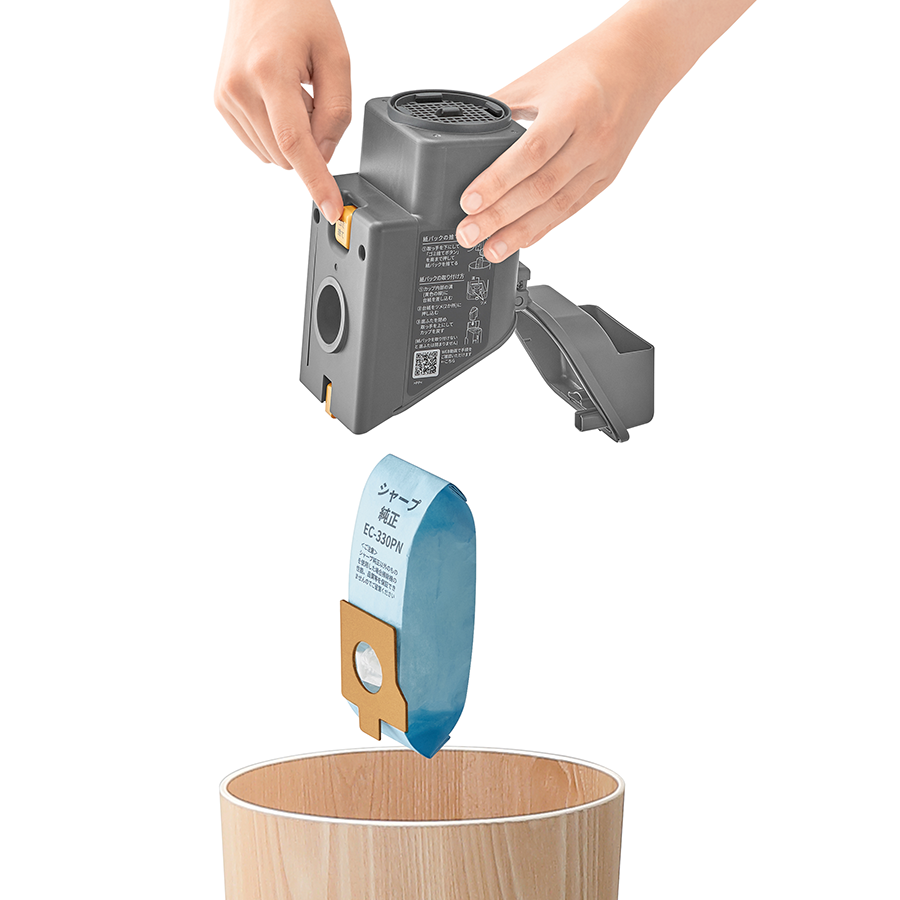 ごみ捨ての際は紙パックを捨てるだけでカンタン。ほこりが舞いにくく、手や服を汚さずに済むので、清潔にごみ捨てをすることができます。ごみ捨ての頻度が少ないので、日々のお掃除における小さなストレスを軽減します。