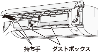 4持ち手をつかみ、ダストボックスを手前に引き出す